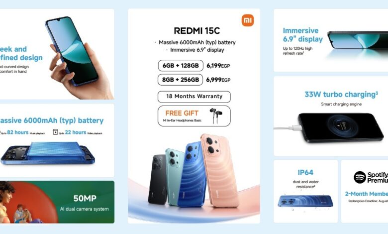 “شاومي” تطلق هاتف Redmi 15C في السوق المصرية بسعر يبدأ من 6199 جنيه وبطارية 6000 مللي أمبير #مكمل_للآخر